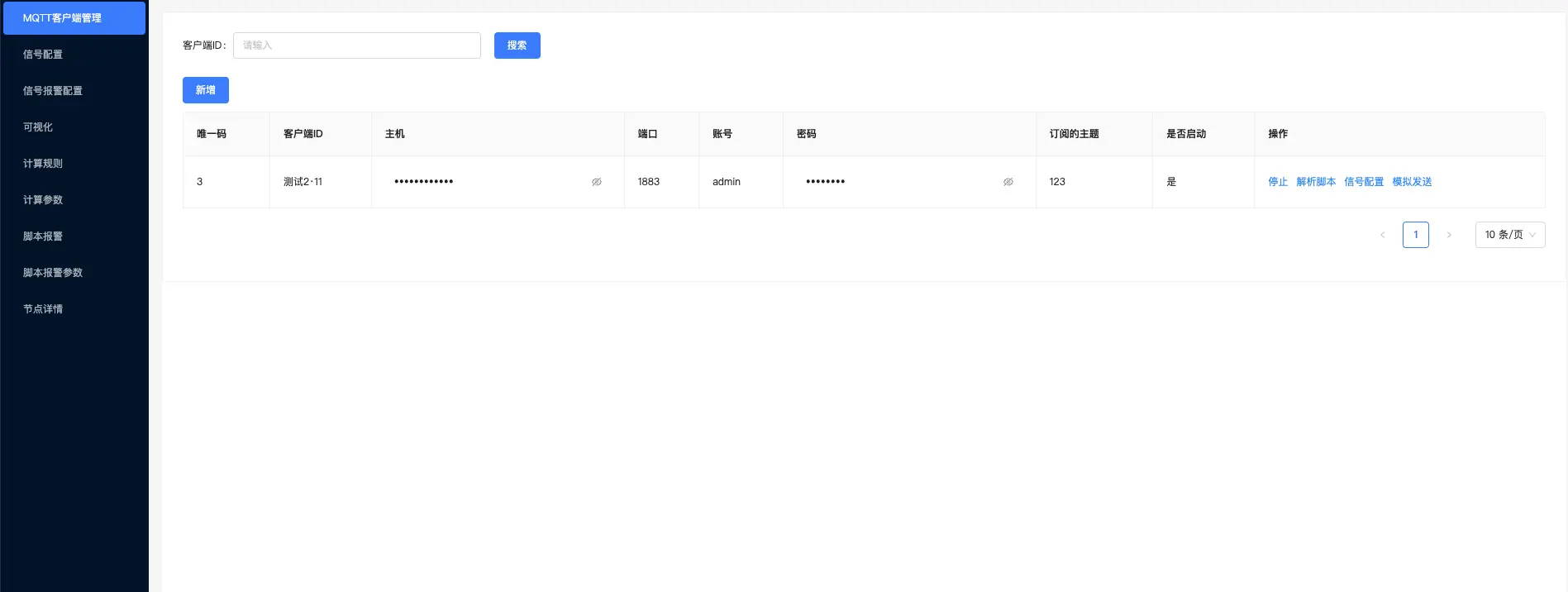 操作如下:单击mqtt客户端管理菜单,后单击界面中新增按钮